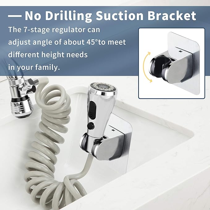 - 【6.6 FT Flexible Faucet Sprayer】The elastic telescopic hose is made of high quality material, non-toxic, explosion-proof and anti-winding. The longest stretch is 6.6 FT, which can be extended beyond the sink, easy to clean large items or remote corners. Flexible Spring design Faucet Sprayer Hose avoid falling on the floor, saves space and provides more convenience