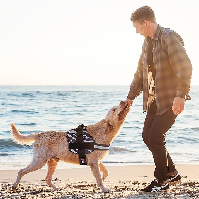 Dogline Dog Harness, Reflective No-Pull Adjustable Vest with Handle for Walking, Training, Breathable, No - Choke Harness for Small, Medium or Large Dogs Room for Patches Zebra Black/White L 27"-34"
