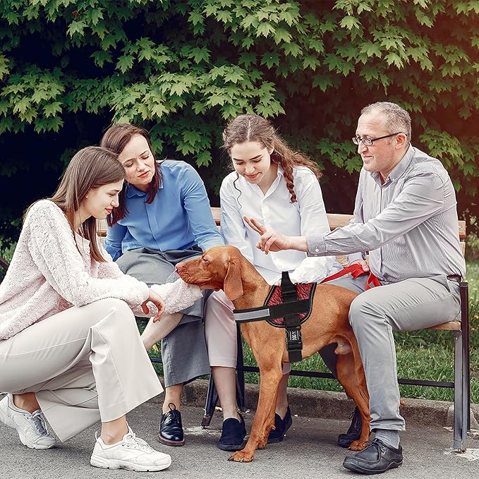 Dogline Dog Harness, Reflective No-Pull Adjustable Vest with Handle for Walking, Training, Breathable, No - Choke Harness for Small, Medium or Large Dogs Room for Patches Zebra Black/Red S 18"-24"