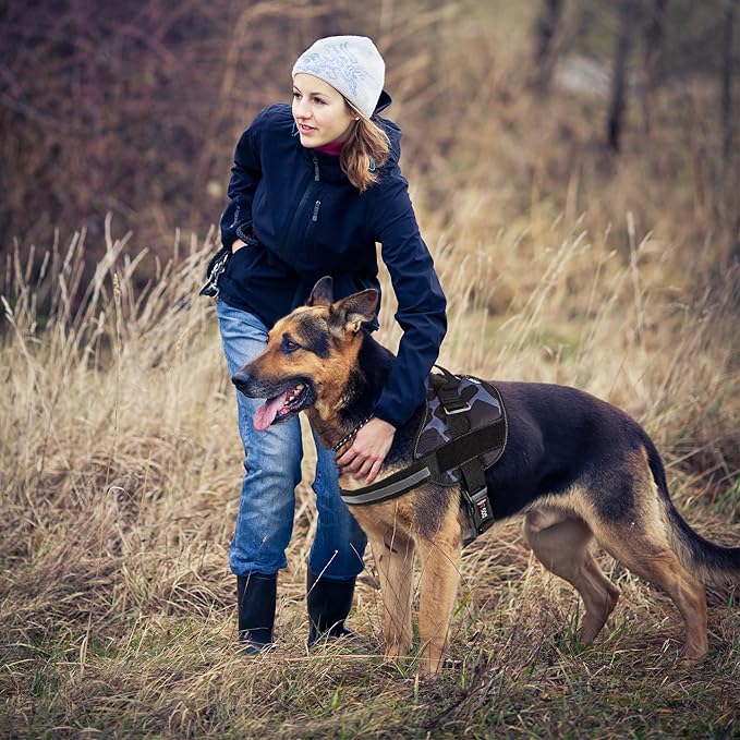 Dogline Dog Harness, Reflective No-Pull Adjustable Vest with Handle for Walking, Training, Breathable, No - Choke Harness for Small, Medium or Large Dogs Room for Patches Girraffe Grey M 22"-28"