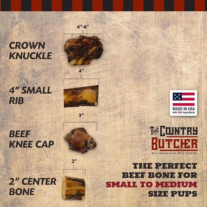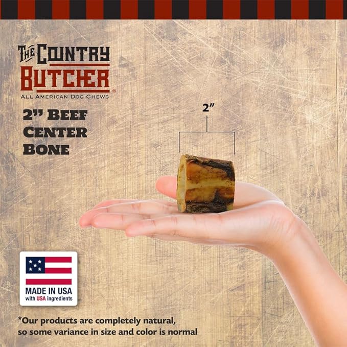 2" Beef Marrow Dog Bones for Aggressive Chewers, Small Breed Dog Treat, Natural, Tough, Chew Toy, Made in The USA, 6 Count