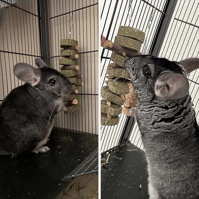 - Keep Teeth Healthy:The teeth of rodents have they growing throughout lives,These natural apple chew sticks and timothy grass cakes are good for teeth grinding to prevent teeth from growing fast and long can help your pets keep their teeth and gums healthy.Chinchilla chew toy can transfer pets attention and prevent pets from chewing cages,sleeping bed