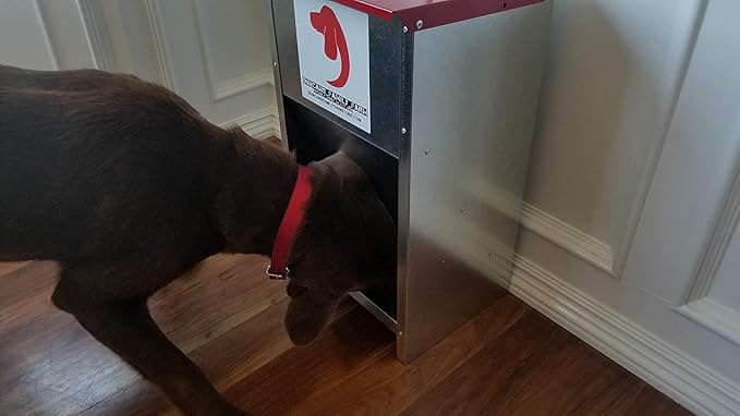 - SIMPLE MAGNET OPERATION: A magnet holds the dispensers door closed, your dog can either nose or paw the door down for self-feeding. Our feeders include slots for wall mounted hanging. Raising the feeder may be best for large and extra-large dogs.