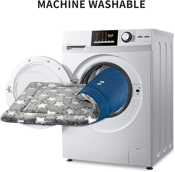 KROSER Fancy Crate Pad Bed Mat Reversible (Cool & Warm), Machine Washable, for Small to XXX-Large Dogs, Grey, Navy, Star Pattern