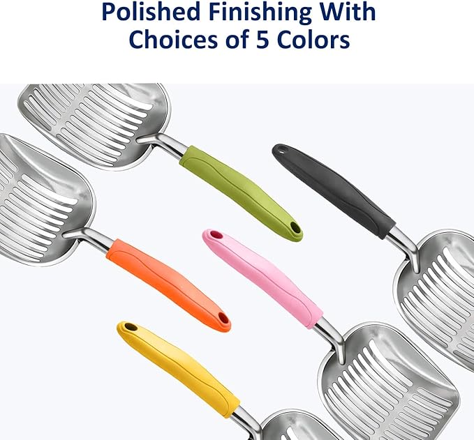 - [Functions]: The sharp edge helps to loosen clumps. The sifter area holds wet clumps and lets clean litter pass through easily. The long handle keeps you away from catโs waste. It is designed to keep litter box clean and save you loads of cat litter.