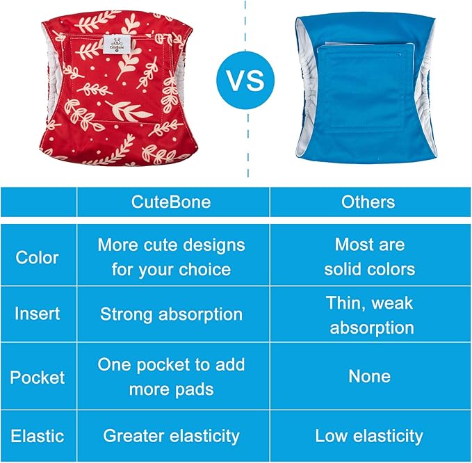 - CuteBone male dog diapers are designed with comfort and durability in mind, they’re perfect for untrained puppies and dog’s incontinent. These soft doggie diapers help your pet keep clean and dry between walks.