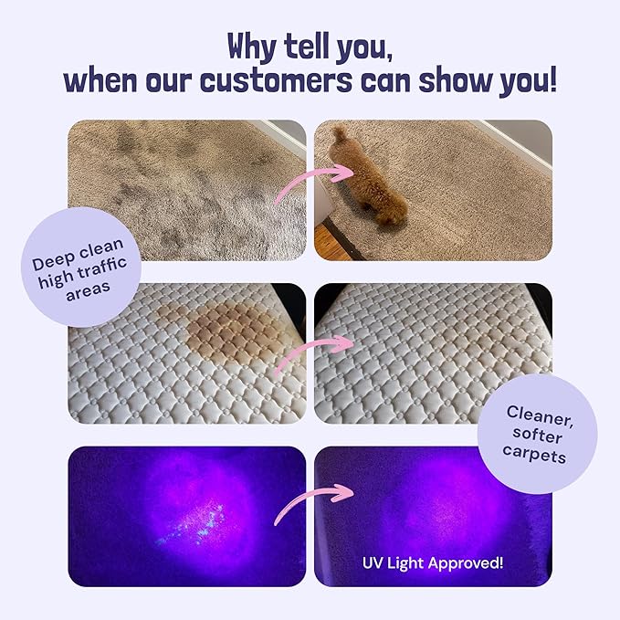 - Revive Carpets Easily: Bring life back to your carpets and upholstery with this dog carpet cleaner. It leaves no residue behind and works wonders on a variety of stains, making it perfect for pet owners who love a clean space