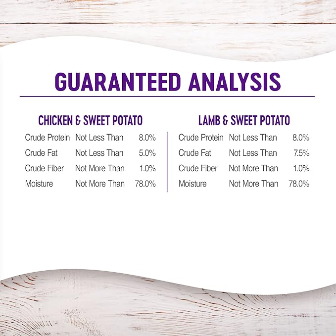 - CHICKEN, LAMB & SWEET POTATO: This natural wet food for adult dogs features real chicken, lamb and sweet potato for complete, balanced nutrition. Pate texture is completely smooth for an irresistible taste your dog will love.
