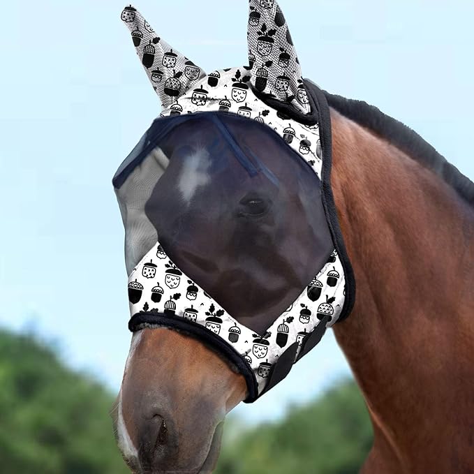 Harrison Howard LumiVista Horse Fly Mask Standard with Ears UV Protection for Horse Pine Cones M Cob