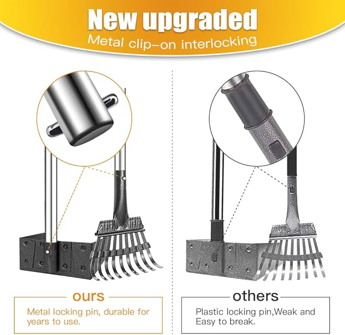 - 【Easy to Use】Each tray and rake is connected with 3 tubes. No extra tool is needed to assemble this heavy duty pooper scooper!