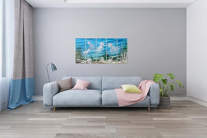 SYGALLERIER Coastal Metal Wall Art Handcrafted 3D Jelly Fish Aluminum Artwork Modern Sea World Pictures Contemporary Abstract Sculpture for Living Room Bedroom Bathroom Decor