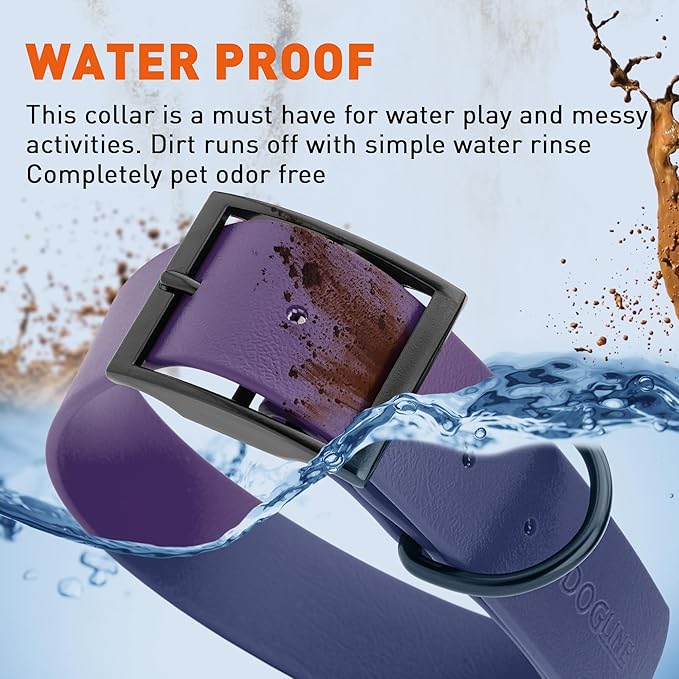 - Free Your Dog to romp in puddles and retrieve from lakes with the Dogline Biothane Waterproof Dog Collar. This water-repellent collar stays dry and odor-free, without shrinking or losing flexibility.