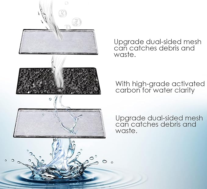 - Excellent Filtration Performance: The filter cartridges are made of premium cotton, activated carbon and built-in filter material, which can effectivly absorb odors and discoloration, help to maintain a healthy aquatic environment