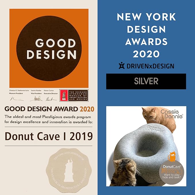 - DUAL FUNCTIONALITY. Our unique dual-purpose design DONUT CAVE won 2 design awards. This cat cave serves as a playground with a spacious tunnel for 1 or more kitties to play. This cat house also provides a cozy enclosed bed for your indoor kittens to sleep in; stay warm in winter and cool in summer. It is also suited for small dogs or other pets like rabbits.