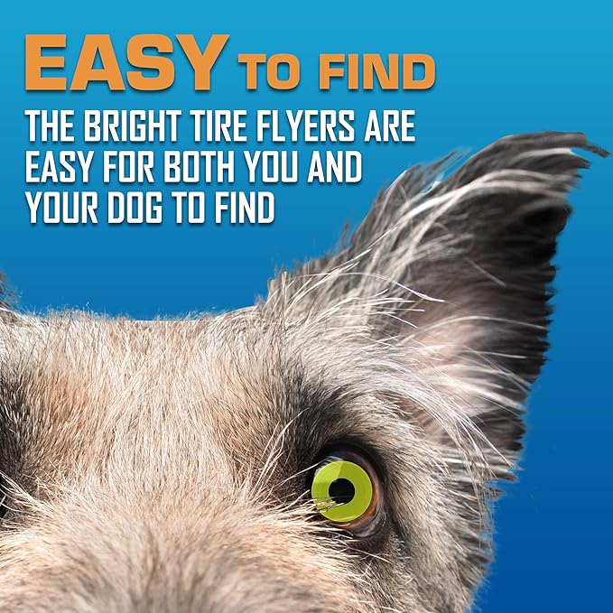 - Flying Disc Dog Fetch Toy: Three Nerf Dog Tire Flyer outdoor dog toys, each 10 inches in diameter, ideal dog fetch toys for large dogs and medium dogs; red, translucent green and translucent blue colors