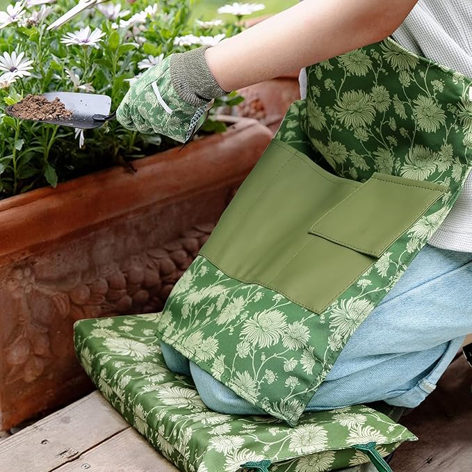 - 【ADD VINTAGE TOUCH TO YOUR GARDEN】 - Together with matching garden gloves, floral design with vintage style of kneeling pad adds the additional beauty to your garden. Kneeling mat with large size 16"X8.3", thicken to 2", bigger & thicker to protect your knees. Built-in handle makes it easy to carry and storage.