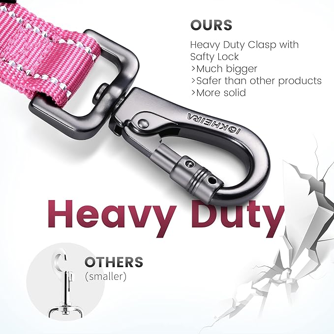 - DURABILITY NYLON MATERIAL AND REFLECTIVE:IOKHEIRA dog leash for large dogs is made of strongest high density webbing to add durability.Our Highly Reflective Dog leash with traffic double handle keeps you both safe and high visibility on your late-evening walks at night.This wear-resistant nylon dog leash is great for medium or large dogs walking, running or training and durable enough to withstand the pulling force of Large pooches up to 200 lb. Suitable for big,medium,small dogs and puppy.