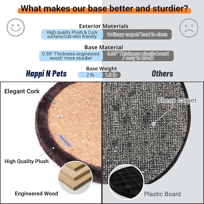- 【Premium materials】A perfect cat scratchers for indoor cats, by using luxury cork surface treatment and high-end plush surrounding the scratching pad, the touch is cozy, and your cat will enjoyably lie, stretch, and scratch on the pad.