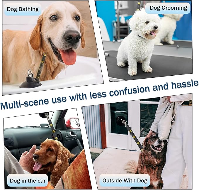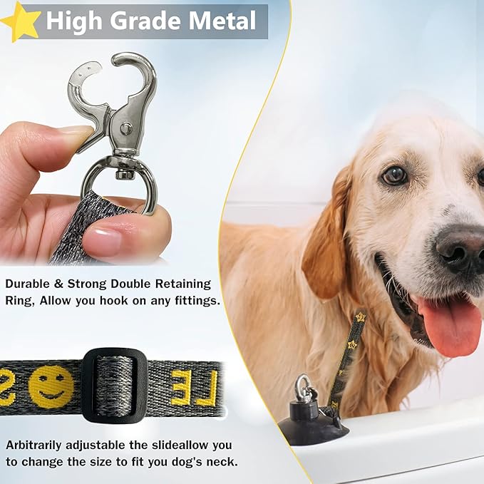Dog Bathing Tether with Heavy Suction Cup, Dog Grooming Tub Restraint Leash with Adjustable Collar for Pet Cat Shower and Grooming
