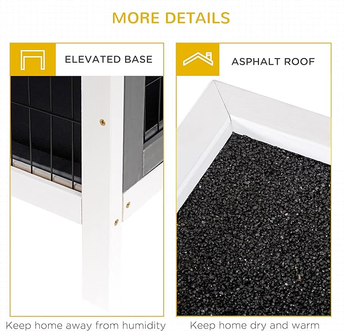 - Suitable for Outdoors and Inside: Keep animals sheltered from the weather with this quail hutch. Your pets are comfortable with the composite asphalt roof that protects them from the rain and shades on sunny days.
