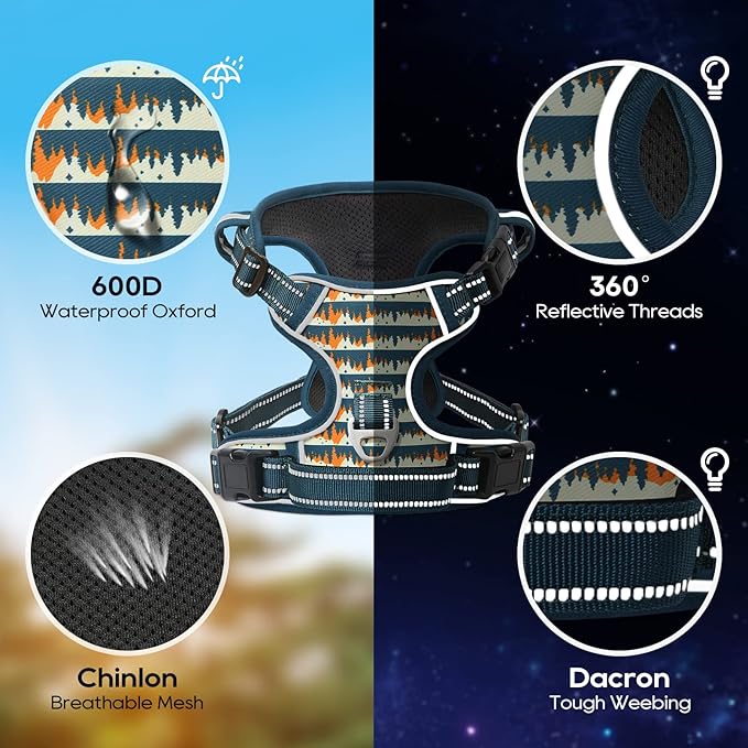 Timos Dog Harness, 3 Snap Buckles No-Pull Soft Padded Dog Vest with 2 Metal Leash Clips, Adjustable Reflective No Choke Pet Harness with Easy Control Handle for Small Dogs, Sunset Valley, S