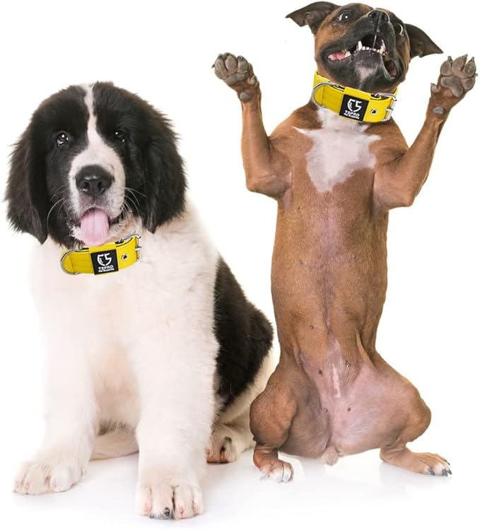 TSPRO Tactical Dog Collar 1.5 Inch Wide Thick Dog Collars with Heavy Duty Metal Buckle, Durable, Strong, Adjustable for Medium to Large Dogs (Yellow M)