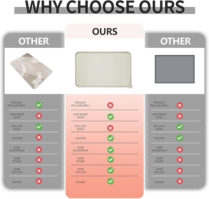 • Anti-slip design: our non-slip pet feeding mat ensures stability for your pet's bowl, preventing any water stains or spills on the floor. Enjoy peace of mind when feeding your pet, knowing that their food stays in place