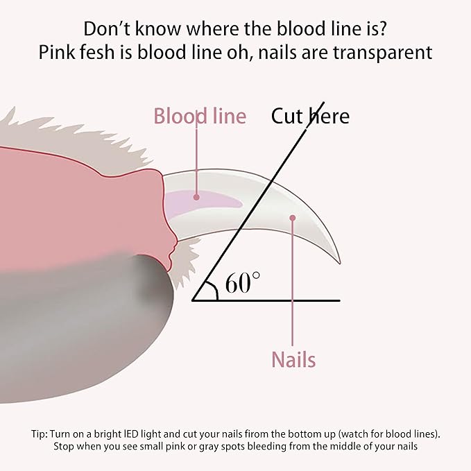 - COMFORTABLE DESIGN: Pet nail clippers, โ Stainless steel is hypoallergenic. that allows you to securely and comfortably take them in order to painful accidents. Ergonomically designed handle is very lightweight and comfortable. Keeping your pet's nails neatly trimmed with our LED Nail Clippers, designed specifically for cats, small dogs, rabbits, and birds.