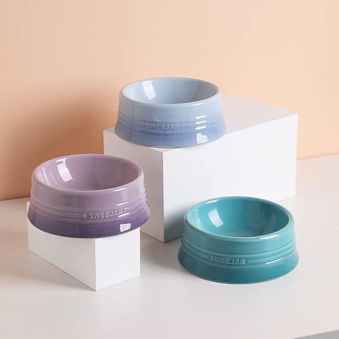 - Non Skidding - SWEEJAR dog bowls are made of food grade porcelain, microwave & dishwasher safe, easy to clean. The ceramic is heavy to help keep the bowl upright when dog eat food. No messy floors to clean.