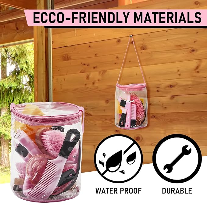 - Product Information: the horse grooming kit, includes a horse grooming tote bag, a oval massage curry, a hard brush, a soft brush, a sweat scraper, bathing sponge, a hoof pick with brush, a mane comb and a tail comb, a total of 9 pieces