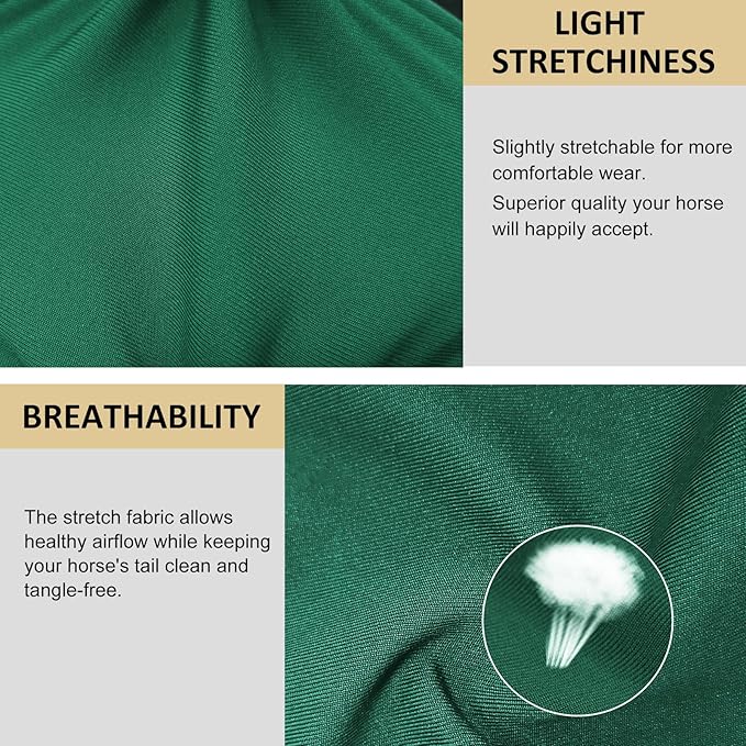 Harrison Howard Stretchy Tail Bag Breathable Horse Tail Guard Slip on Design Protect Horse Tail 2 Strand Closure Straps Keep Tail Clean & Protected 22" L Length Makes Grooming Easy-Deep Green