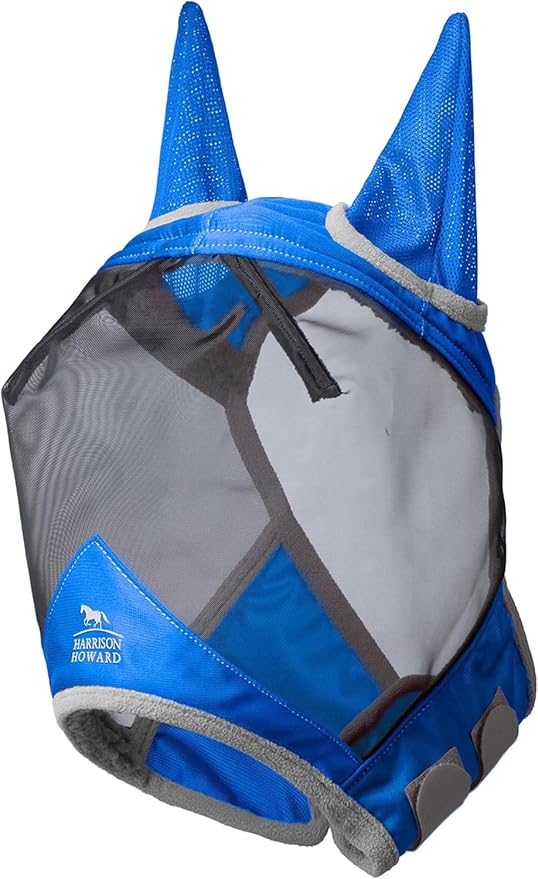 Harrison Howard Pro Luminous Horse Fly Mask Large Eye Space Standard with Ears UV Protection for Horse Signature Blue XL Extra Full Size