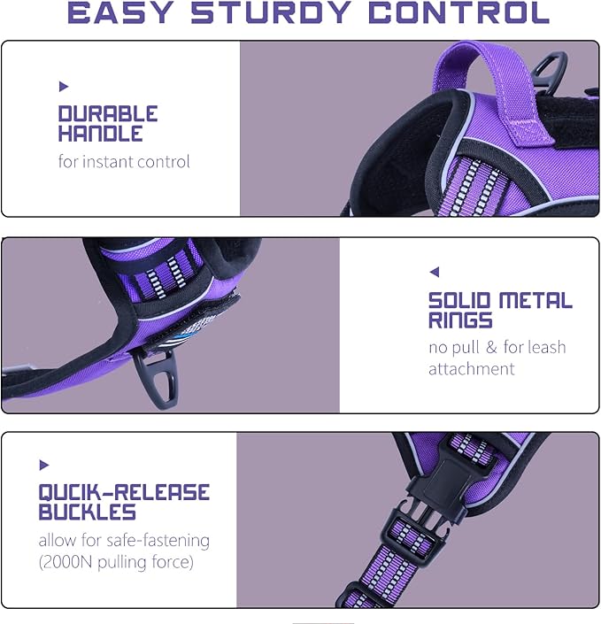 BUMBIN Tactical Dog Harness for Large Dogs No Pull, Famous TIK Tok No Pull Puppy Harness, Fit Smart Reflective Pet Walking Harness for Training, Adjustable Dog Vest Harness with Handle Purple XL