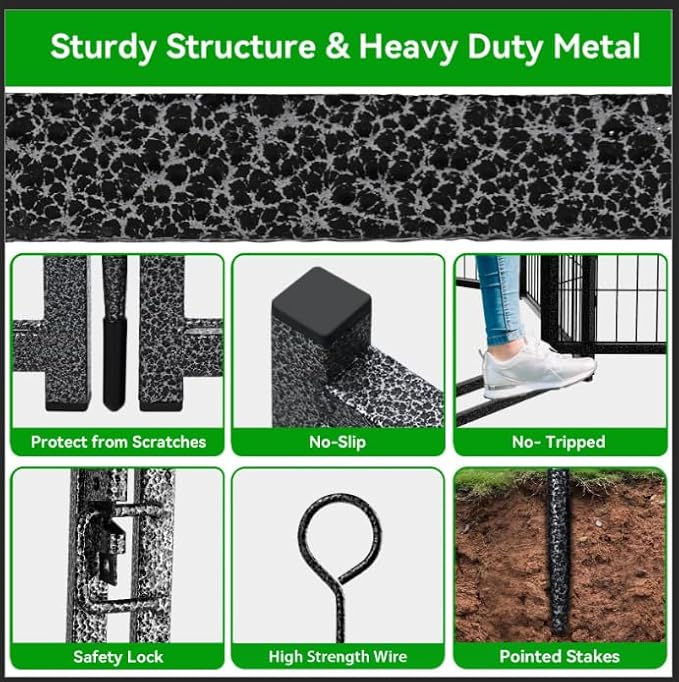 - 【Sturdy Structure & Stable Ground Stakes】Kfvigoho metal stakes are designed round top, which can be pounded into the ground for greater stability, this dog fence with sturdy structure, so dogs can't knock it down and keep them confined in a safe area, the pet pen works great for small, medium and large dogs and rabbits, ducks, turtles etc