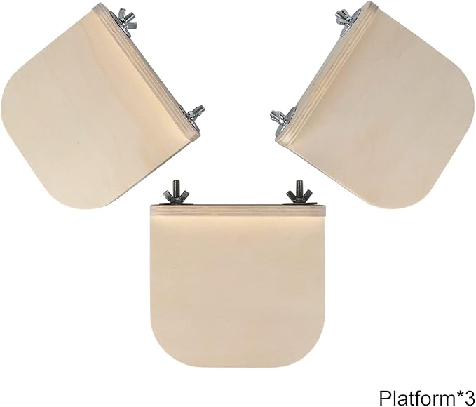 Chinchilla Wooden Platform Set, Chinchilla Cage Platform with Feeding Bowl, Small Animals Cage Accessories for Squirrel Gerbil Suger Glider Hamsters (3Pcs of Small Platform)