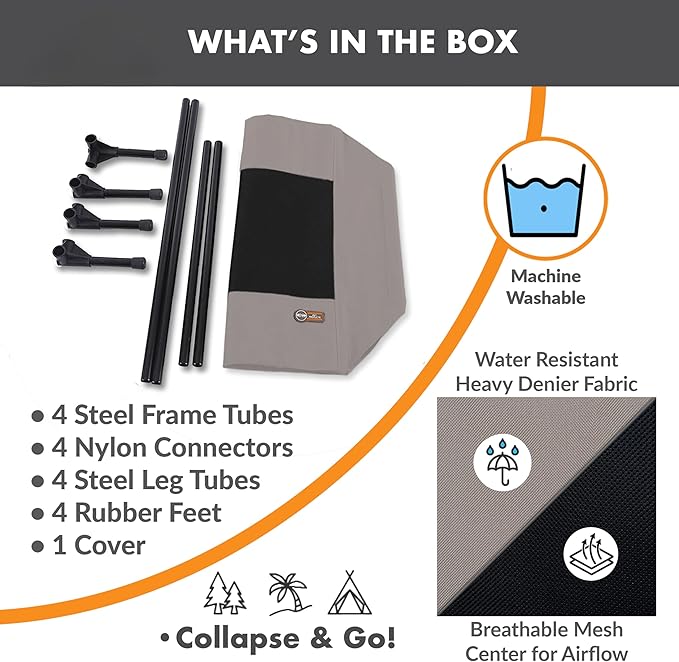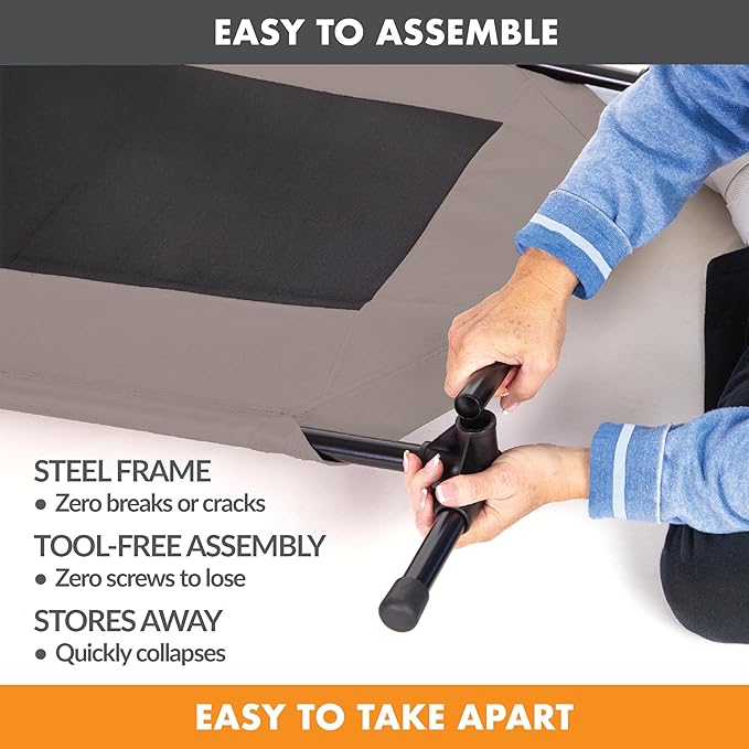 - COLLAPSIBLE: Collapsible dog cot is easy to assemble and disassemble, no tools necessary making this portable bed great for use during travel, camping, picnicking, place board training and more