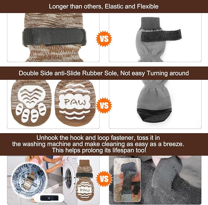 - Anti-slip: With a three-sided non-slip rubber sole, your pet's paws will have a good grip on the floor. For hardwood floors, if your baby's paws have a problem slipping on wood floors, we recommend you buy these socks with a anti-slip adhesive. Use non-slip socks to help heal foot wounds and prevent the dog from licking and further irritating the wound. ⚠️Please note that we have a design patent to protective this exclusive design!