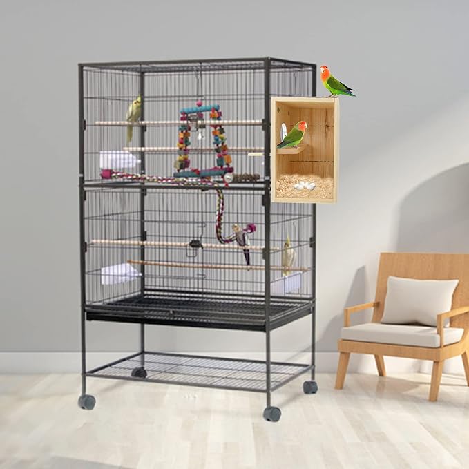 - 【Easy to Install and Clean】Each bird's nest box includes accessory screws and bird perches to fit completely inside or outside the cage. There is compartment inside the box to protect the bird eggs, and the hinged lid is designed for easy opening and closing of the bird nest box, as well as quick cleaning and changing of bird bedding materials.