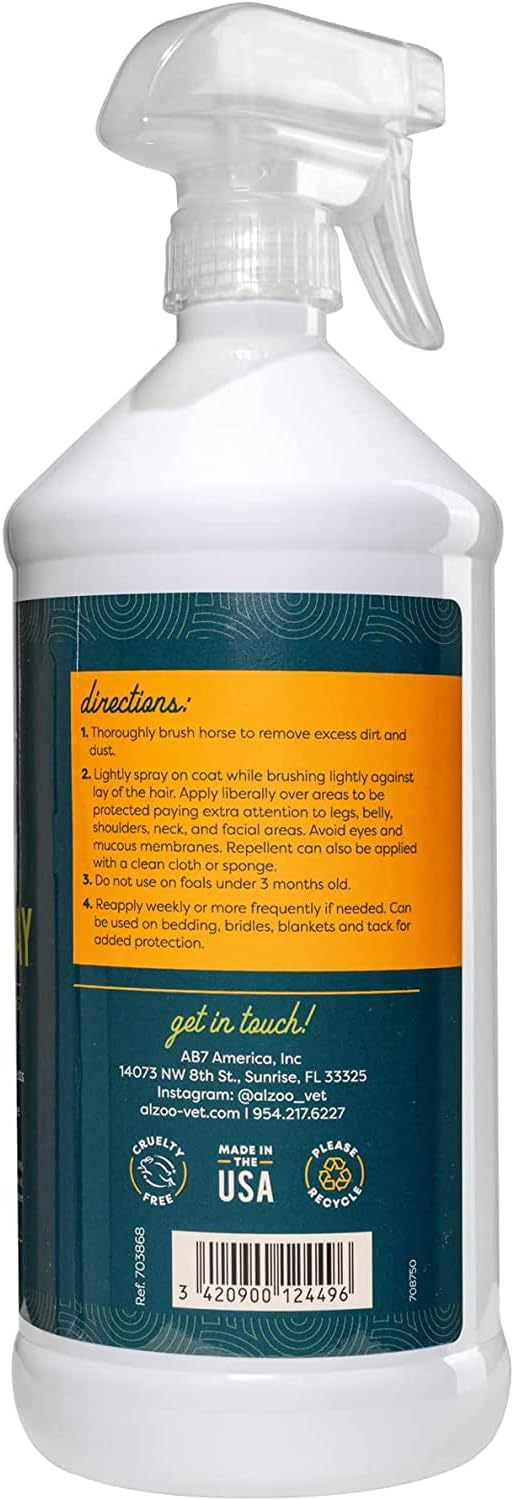 Natural Fly and Tick Horse Spray, Helps Repel Mosquitoes, Horseflies & Ticks, Plant-Based Active Ingredients, 32 Fl. Oz. Spray Bottle