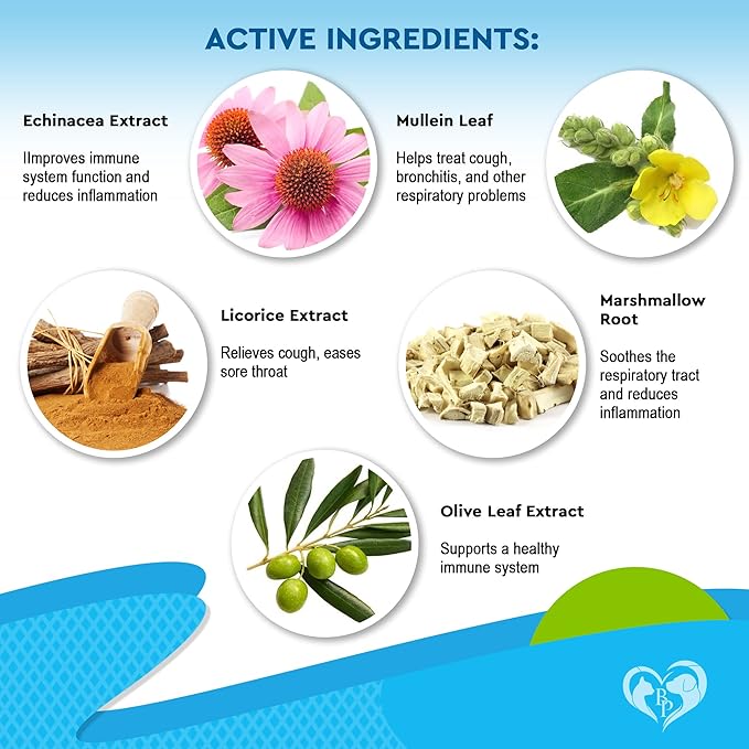 - โ PREMIUM COUGH AND THROAT SOOTHER - beloved pet treatment is highly effective in relieving dry, wet, barky cough, and wheezing. We understand that cough is just a symptom of pet allergy, bronchitis, or tight collar trauma. Our pet's throat soothers gently and relaxes the trachea and calms the respiratory tract.