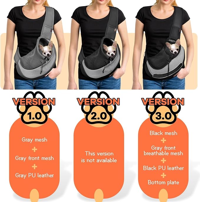 YUDODO Pet Sling Carrier for Small Dogs & Cats – Hands-Free Puppy Carrier with Safety Hook, Large Zipper Pocket, Soft Breathable Mesh, Adjustable Strap & Reflective Strip (Gray 3.0 S)