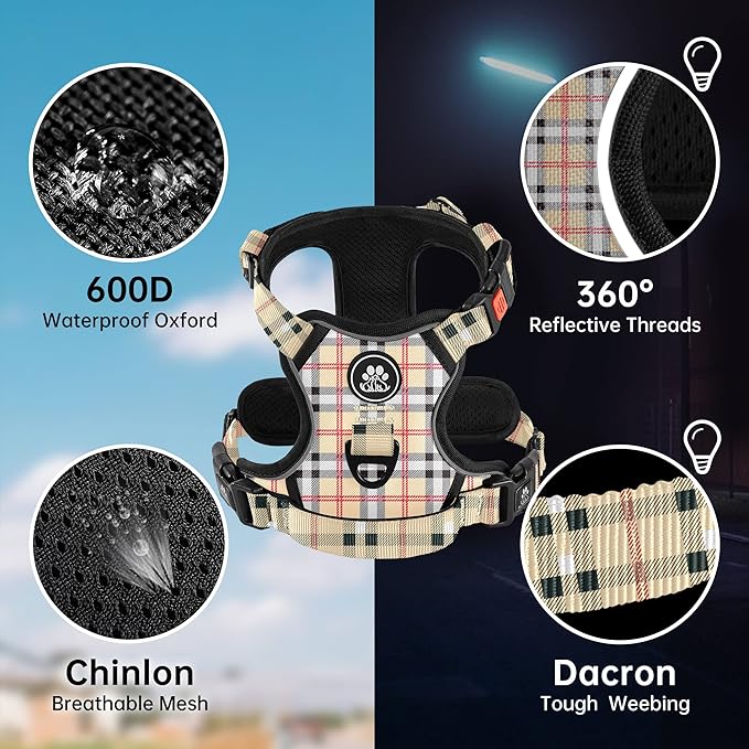NESTROAD No Pull Dog Harness with Leash, Reflective No Choke Pet Vest Harness,Adjustable Soft Padded Dog Harness with Easy Control Handle for Small Dogs(Checkered Beige,Small)