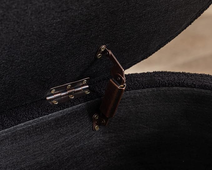 Storage Ottoman Bench Upholstered Fabric Storage Bench End of Bed Stool with Safety Hinge for Bedroom, Living Room, Entryway (45.5-inch, Black)