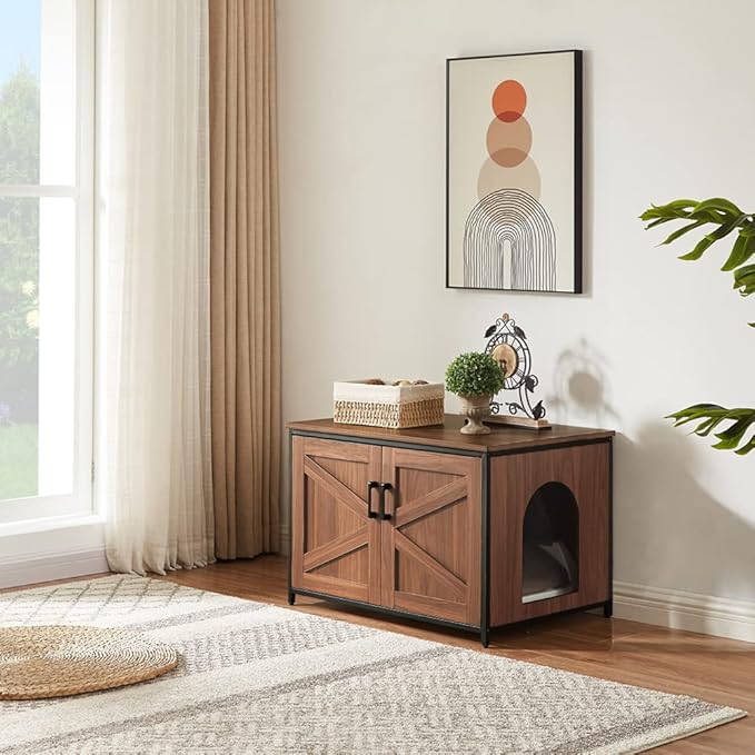 - MULTI-FUNCTION: With a great finish of walnut color it will make your room look stylish with great multi-features you can use as your personal desire. Our beautiful litter box enclosure can also be great to use as a storage cabinet, with great decor on top such as a lamp or a plant.