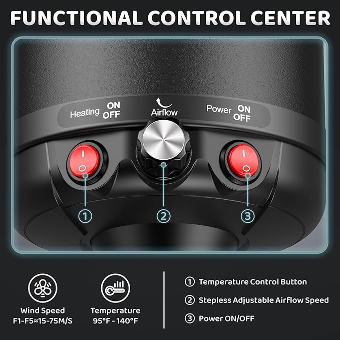 - Adjustable Speed & Temperature: Strong and stable motor equips this dog blow dryer with several speed and temperature levels. Maximum Wind Speed: 72m/s; Temperature Range: 95โ-135โ. The dryer will stop working immediately if the temperature is too high because it has a built-in temperature control protection system.