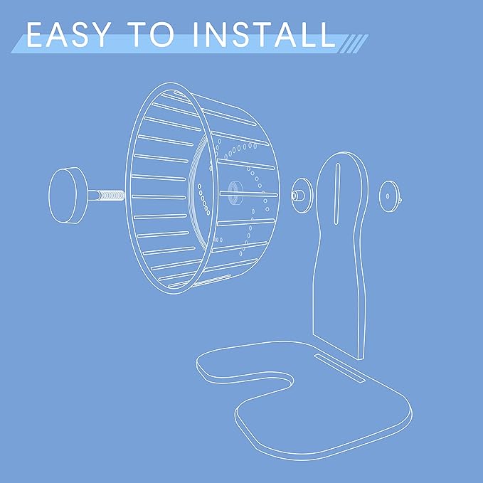 - STURDY - You can complete the installation simply by tightening the wheels and inserting the base without complicated process, placed directly on the flat floor of your pet's home. The wheel can be used either free-standing, with the supplied stand, or be attached to wire hamster homes.