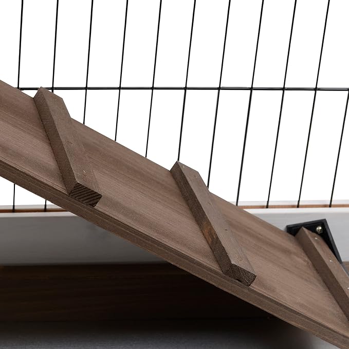 - Easy to Access: The multiple lockable doors of this bunny cage eliminate designs with only top-opening entryways, which take away the furry friends' abilities to climb in themselves, making your task effortless, free-handed, and fluent when letting them back in. Featuring two pull-out trays for quick cleaning and feeding, this fir wood and steel cage for bunnies assures convenience.