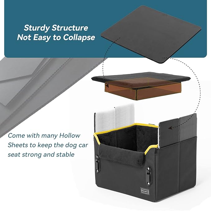 - Sturdy and Durable Design: The car seat for dogs engineered with stable hollow sheets for reliable support that resists collapse. Durable Oxford fabric features a easy wipe clean surface. Plush fleece lining and well-designed pillow comfort pets while smoothing the ride for anxious or carsick dogs