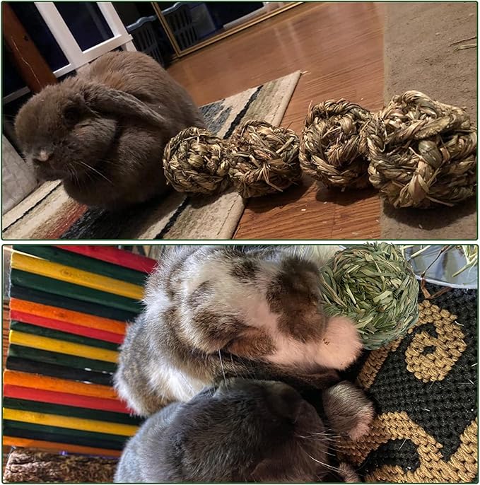 - Pollution-free and Harmless: Rabbit chew balls are made of natural material that does not cause any harm to the environment or pose any danger to your pet. Timothy Grass is a natural biodegradable product. This safe toy is suitable for all pets