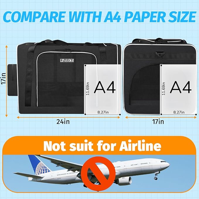 - 【EXTRA LARGE SPACE 】The carrier size:24"x17"x17", Suitable for pets up to 55 pounds. perfect for a large cat or several small cats.